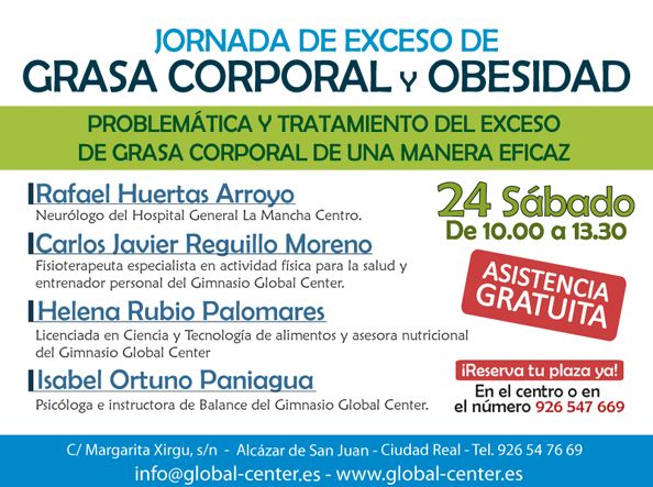 Próximamente en el Global Center se celebrará una Charla Gratuita para todos los asistentes sobre "El ejercicio físico, la mejor medicina" a cargo de D. Carlos Reguillo, especialista en fisioterapia del deporte, especialista en asesoramiento y prescripción del ejercicio físico para la salud e instructor de actividades físicas.